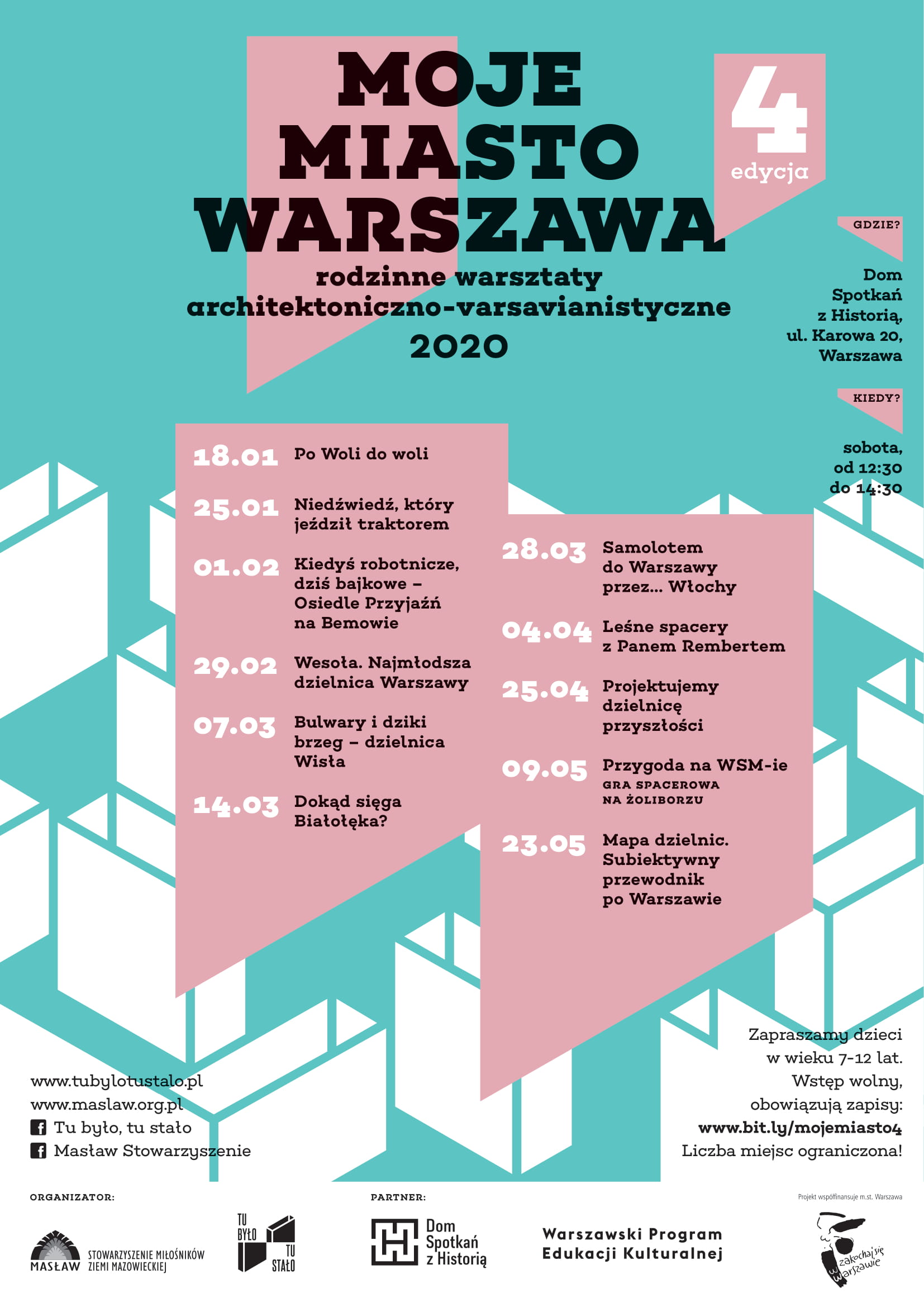 W minionym roku udało się wspólnie m.in. zaprojektować Plac Defilad, stworzyć wesołe miasteczko czy zbudować świdermajery. W tej odsłonie przyjrzymy się m.in. Ursusowi czy Żoliborzowi, zajrzymy do Rembertowa i nad Wisłę, a nawet będziemy obmyślać dzielnicę, której jeszcze nie ma. Od stycznia do maja czeka na Was 11 warsztatów. Dołączajcie!