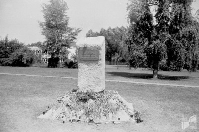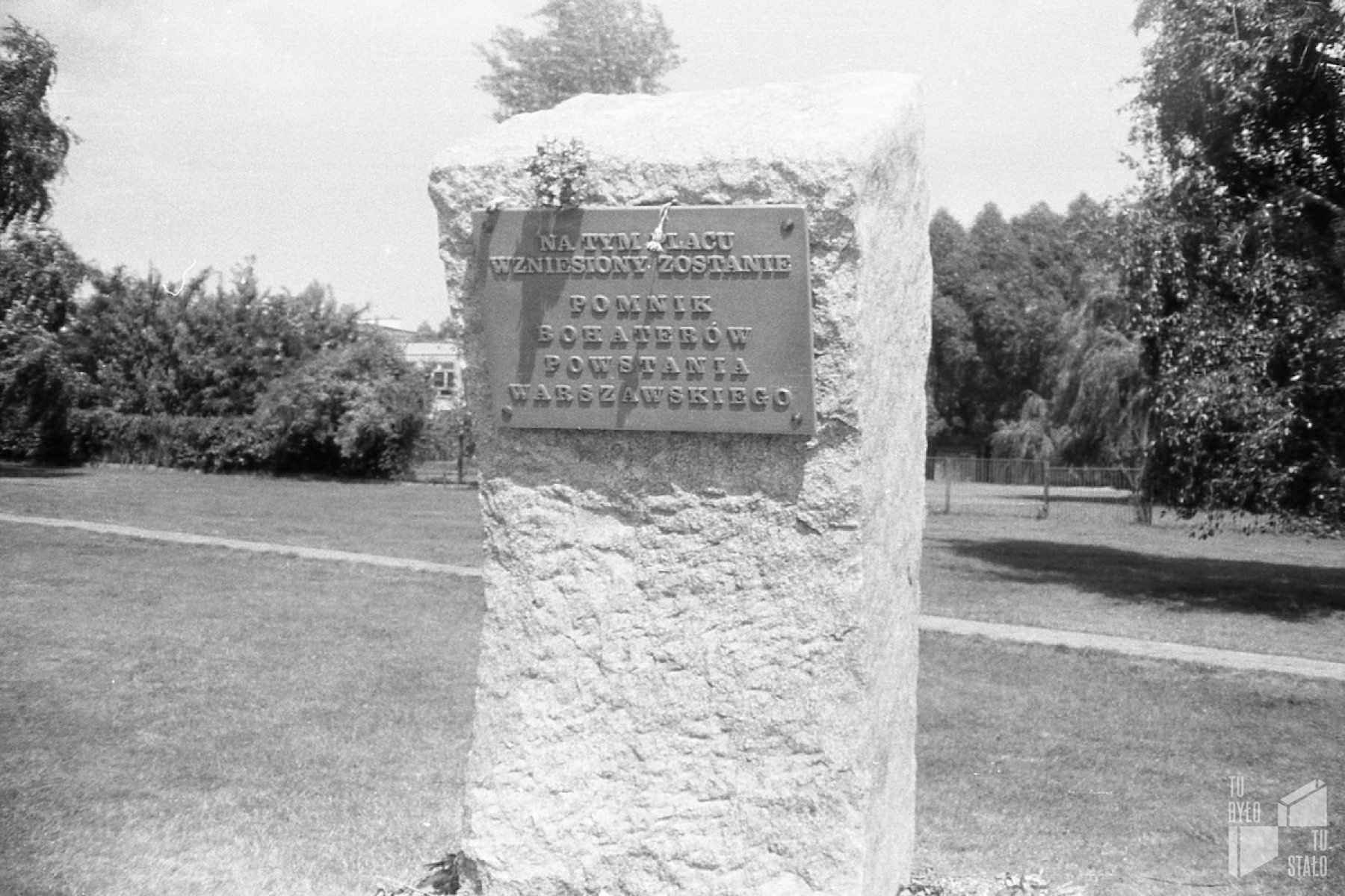Plac Krasińskich. Tablica w miejscu wmurowania kamienia węgielnego pod Pomnik Powstania Warszawskiego, 1984-88, zbiory rodziny Mirosława Szewczyka