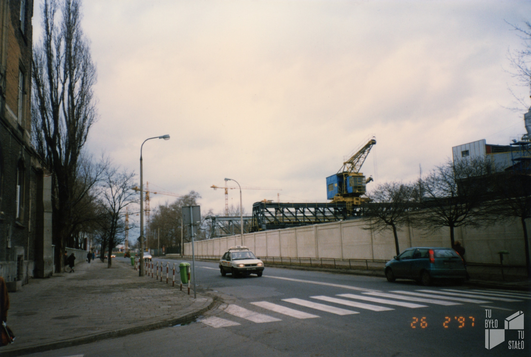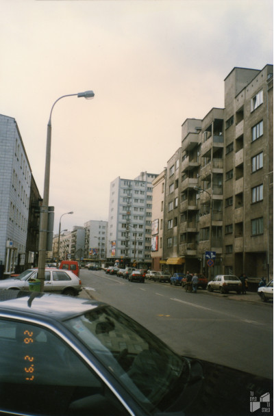 Dobra. Odcinek pomiędzy ulicami Zajęczą i Tamka. Po prawej stronie widoczny jest blok przy Dobrej 29. 26.02.1997. Fot. Marta Nowosielska